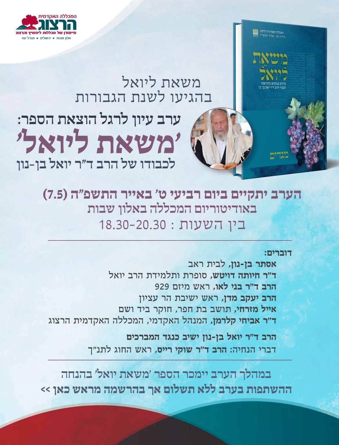 ערב עיון לרגל הוצא הספר 'משאת ליואל' לכבודו של הרב ד"ר יואל בן-נון.