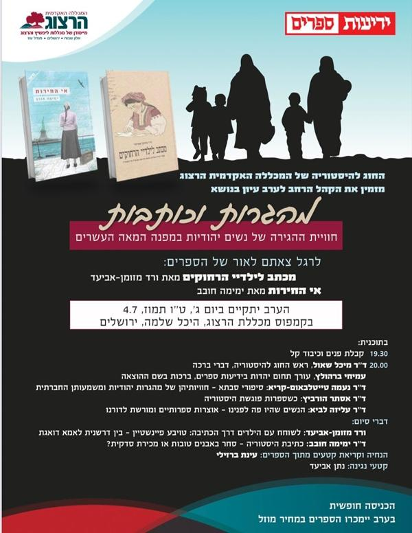 בתוכנית: 19:30 קבלת פנים וכיבוד קל 20:00 ד"ר מיכל שאול, ראש חוג להיסטוריה, דברי ברכה עמיחי ברילין, עורך תחום יהדות בידיעות ספרים, ברכות בשם ההוצאה ד"ר עמנואל שילה-איאון, סופר – התרבות של מהגרים יהודיים ומשמעותה החברתית ד"ר אסתר הרצוג, סוציולוגית פמיניסטית מרצה במכללה ד"ר עילית לוי-לוז, פסיכולוגית קלינית – צאצאים ממשפחות ניצולי שואה לדורנו דברי […]
