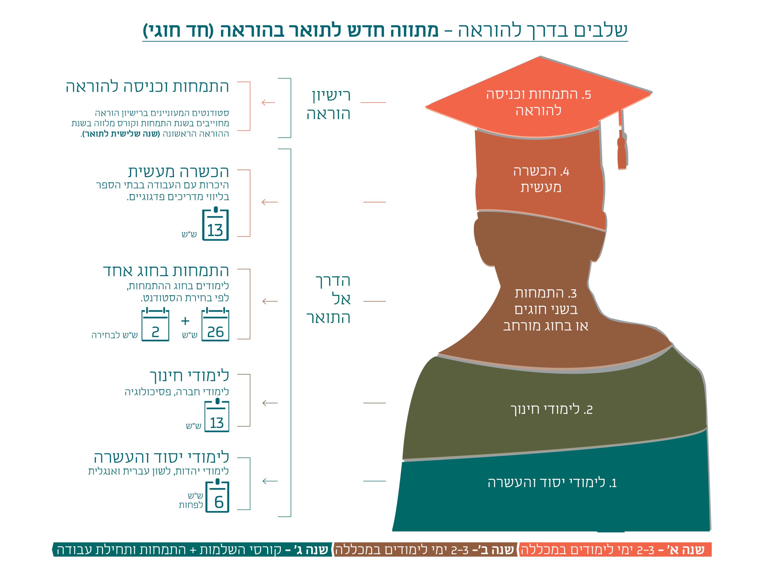 היקף הלימודים ומספר שנות הלימוד לתלמידים במסלול להסבת אקדמאים/הרחבת הסמכה משתנה בהתאם להכרה בלימודיהם הקודמים.